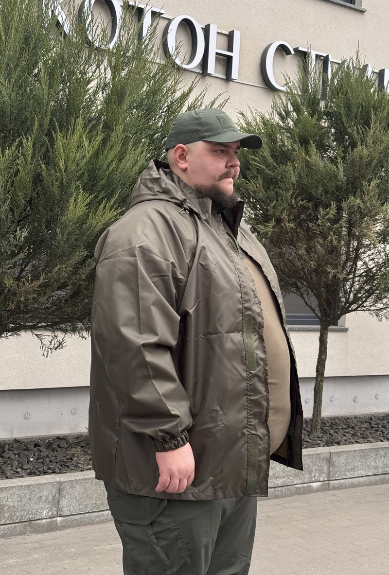 Куртка-дощовик власного пошиття призначена для ефективного захисту від дощу та вологи. Виготовлена з тканини Оксфорд кольору хакі, вона поєднує практичність та надійність.